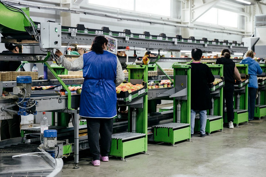 В компании «Алма Продакшн» оптимизировали процесс сортировки и упаковки яблок в рамках национального проекта «Производительность труда».