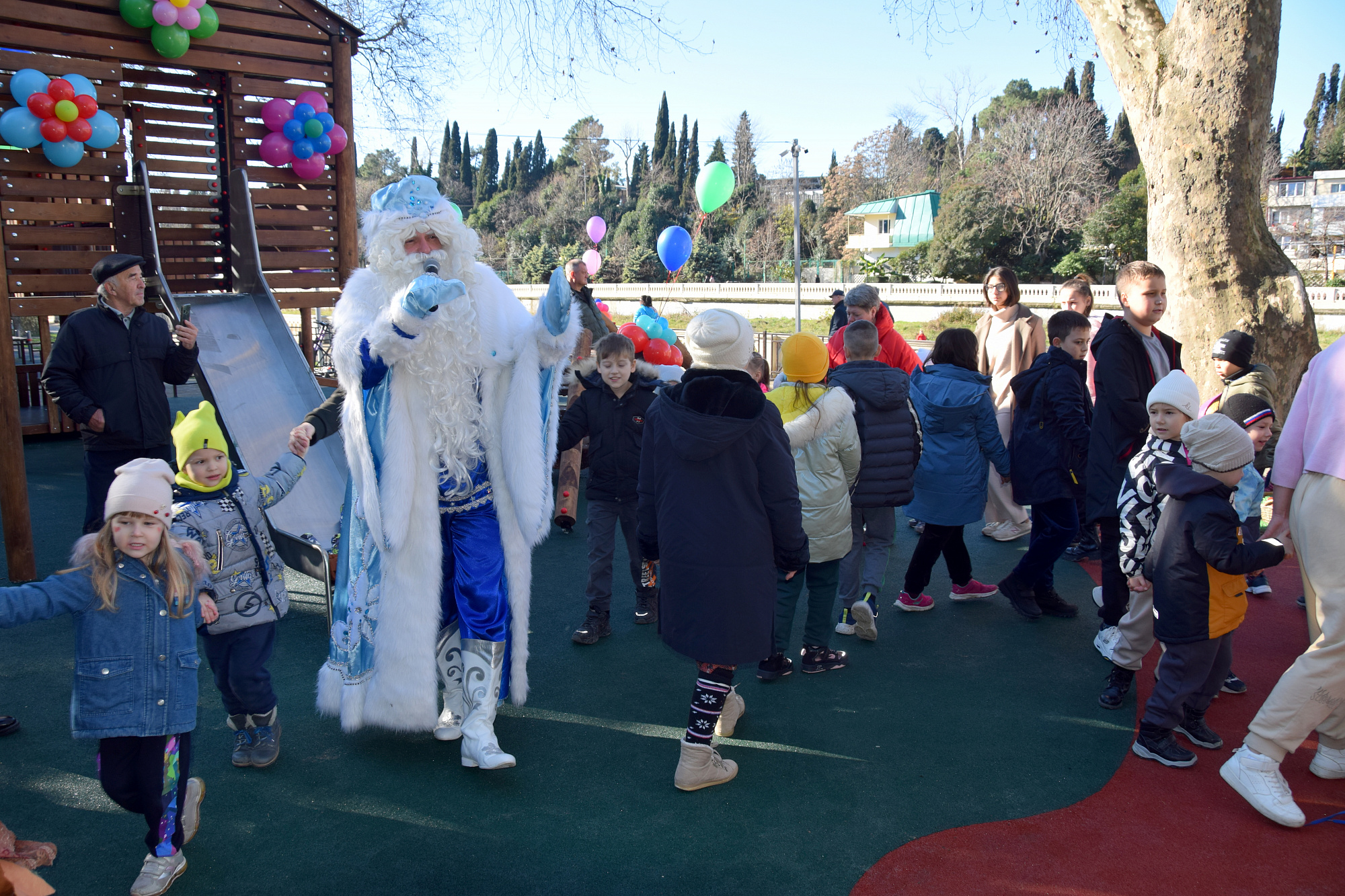 В день торжественного открытия для горожан было организовано новогоднее представление с участием Деда Мороза. Юные сочинцы получили подарки.