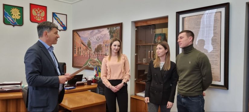 Сегодня глава города Дмитрий Кияшко поздравил Марину и Владимира Труниных, а также многодетную маму Марию Шимолину со значимым событием в их жизни. Теперь ейчане смогут купить собственное жилье, обустроить его так, как об этом мечтали несколько лет.