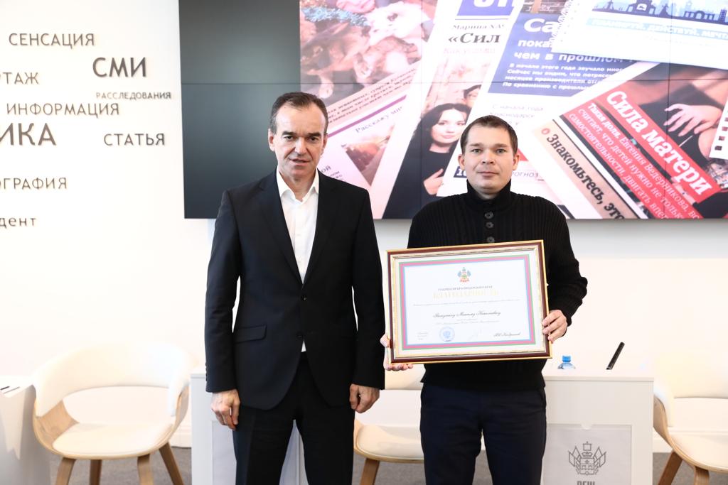 Максим Ватутин отмечен за высокий профессионализм и большой личный вклад в развитие средств массовой информации Кубани.