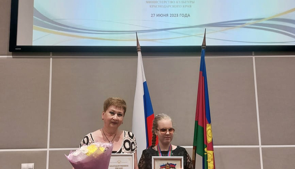 А Денис Шиндин (балалайка) награжден Дипломом губернатора Краснодарского края. Мальчик - инвалид детства по зрению. Благодаря своему трудолюбию и ответственному отношению к занятиям, он сумел покорить сердца строгих членов жюри различных конкурсов, занимая только призовые места. Он выступает не только как солист, но и в составе инструментального ансамбля «Балалайка».