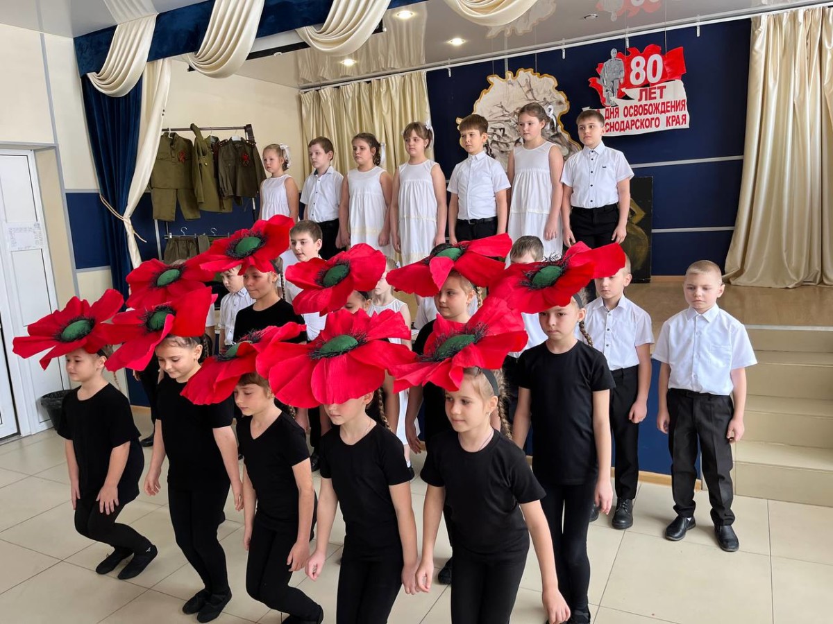 Отдельно стоит сказать о тематическом оформлении школы. В коридорах первого и второго этажа были организованы инсталляции, посвященные юбилейным датам Великой Отечественной войны: 80-летию со Дня прорыва блокады Ленинграда, 80-й годовщине Сталинградской битвы и 80-летию со Дня освобождения Краснодарского края от немецко-фашистских захватчиков.