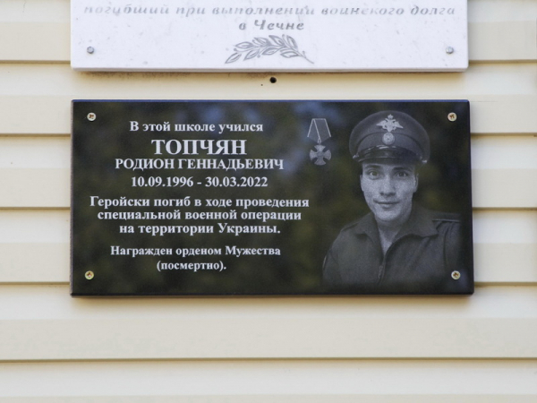 В СОШ №11 имени летчика-космонавта, дважды Героя Советского Союза В.М. Комарова города Ейска открыта памятная мемориальная доска выпускнику школы Топчан Родиону Геннадьевичу.