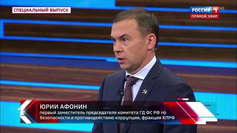 Первый заместитель Председателя Центрального Комитета КПРФ Ю.В. Афонин выступил в программе «60 минут» на телеканале «Россия-1».