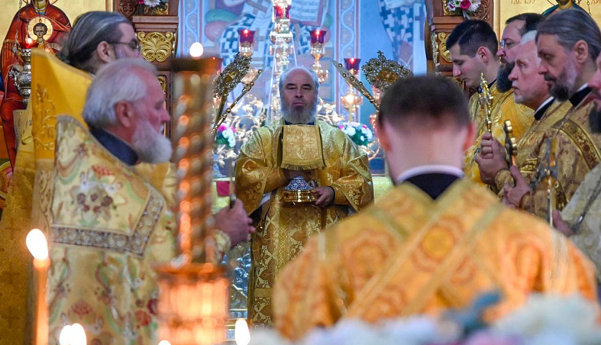 Глава города-героя Новороссийска принял участие в утренней службе, которую провел епископ Новороссийский и Геленджикский Феогност, и лично поздравил его с праздником.