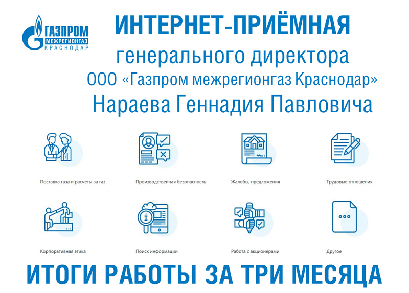 Интернет-приемная генерального директора «Газпром межрегионгаз Краснодар» на сайте компании становится все более популярным каналом обратной связи с клиентами.