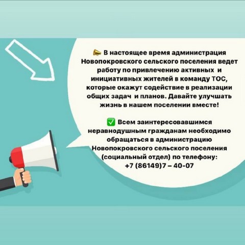 -информирование населения о решениях органов местного самоуправления поселения; -представительство интересов жителей соответствующей территории в органах местного самоуправления поселения; -организация участия населения в работах по обеспечению благоустройства, озеленению, иных социально значимых для соответствующей территории работ; -обеспечение исполнения решений, принятых на собраниях и конференциях жителей; -участие в конкурсах, грантах, для привлечения дополнительных источников финансирования; -формирование у жителей станицы ответственного отношения к находящемуся в их пользовании муниципальному имуществу; -формирование у населения желания облагораживать придомовую территорию и зоны отдыха.Для качественной организации территориального общественного самоуправления требуются активные, заинтересованные в результате руководители ТОС, квартальные, председатели уличных комитетов.