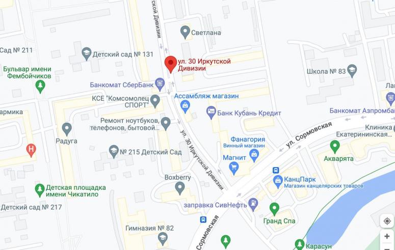 8 августа на электронных картах американского поисковика Google в Комсомольском микрорайоне Краснодара, на Тюляевском бульваре,