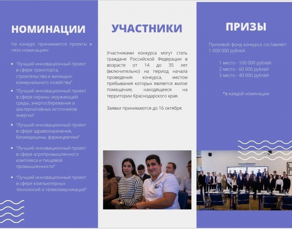 Участниками конкурса могут стать граждане РФ, зарегистрированные на территории Краснодарского края, в возрасте от 14 до 35 лет включительно.