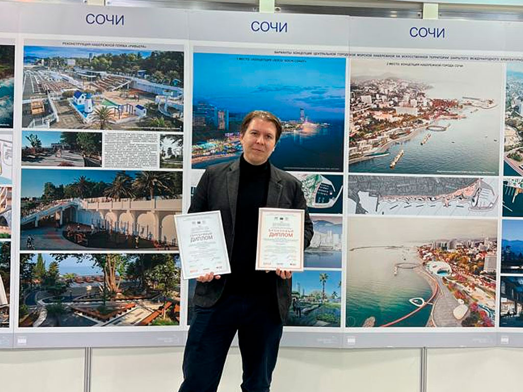 Кроме того, золотым дипломом награжден НИИ перспективного градостроительства — разработчик генерального плана Сочи — за проект в Геленджике.