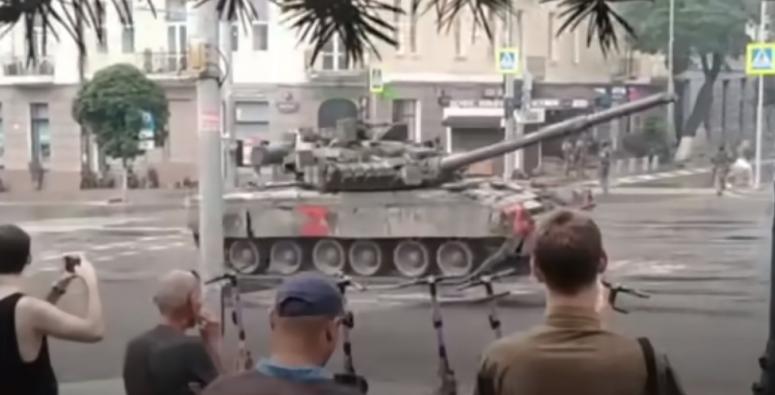 танк на улице Ростова-на-Дону кадр из видео очевидца, соцсети