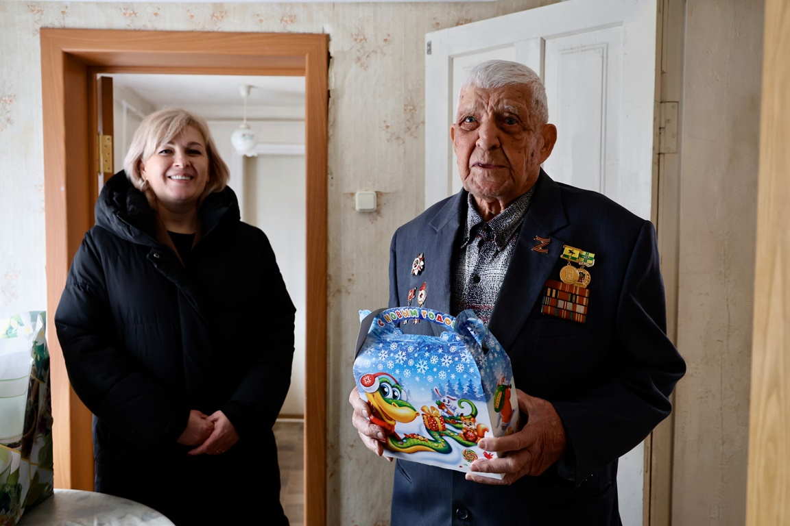ВЕТЕРАН ВЕЛИКОЙ ОТЕЧЕСТВЕННОЙ ВОЙНЫ ПРИНИМАЕТ ПОЗДРАВЛЕНИЯ С НОВЫМ ГОДОМ