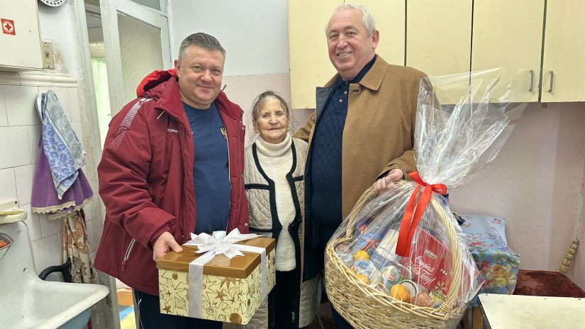 В этом году депутаты собрали ветерану корзину с продуктами для новогоднего стола и вручили небольшой подарок.