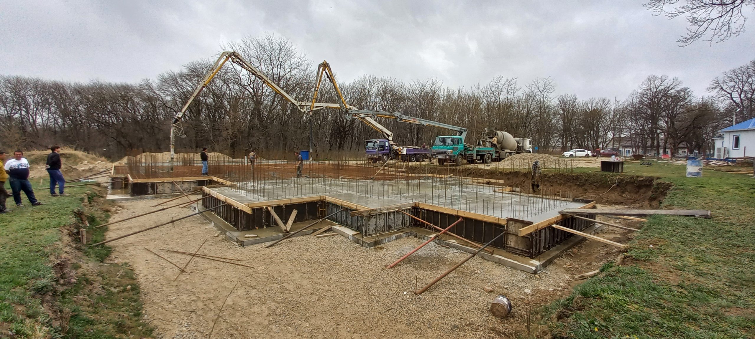 Следующим этапом стала масштабная работа по заливке фундаментной монолитной железобетонной плиты. Для нее потребовалось 430 кубометров
