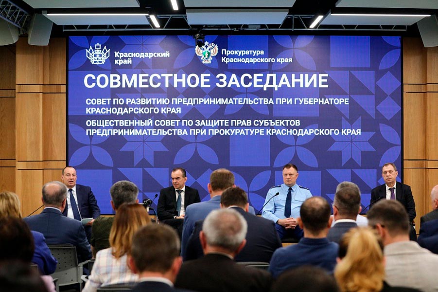 В день российского предпринимательства губернатор Вениамин Кондратьев и прокурор края Сергей Табельский провели совместное заседание. Участие в нем приняли председатель ЗСК Юрий Бурлачко, уполномоченный по защите прав предпринимателей края Игорь Якимчик, представители бизнес-сообщества, некоммерческих и общественных организаций.