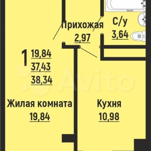 - Общая площадь: 38.3 м²