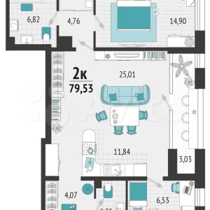 - Общая площадь: 79.5 м²